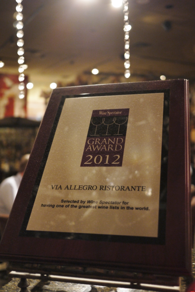 一間擁有 5,000 多支不同酒款,被譽為『酒存量最多』的餐廳,相信各位愛好杯中物的朋友一定不會錯過的。Via Allegro Ristorante 位於 Etobicoke 的意大利餐廳,它的 Wine List 真的大得驚人,有點像放大了的 Bible or Law Book…. 哈哈~ 裡面有很多外面較少有的珍品以供選擇…. 跟據我的「屠酒」朋友鑑定,酒的價錢非常合理,相比一般餐廳的定價標準來說是較便宜。而且這些『酒』為餐廳帶來很多不同榮獲 & 關注 (可參與下面列項)。