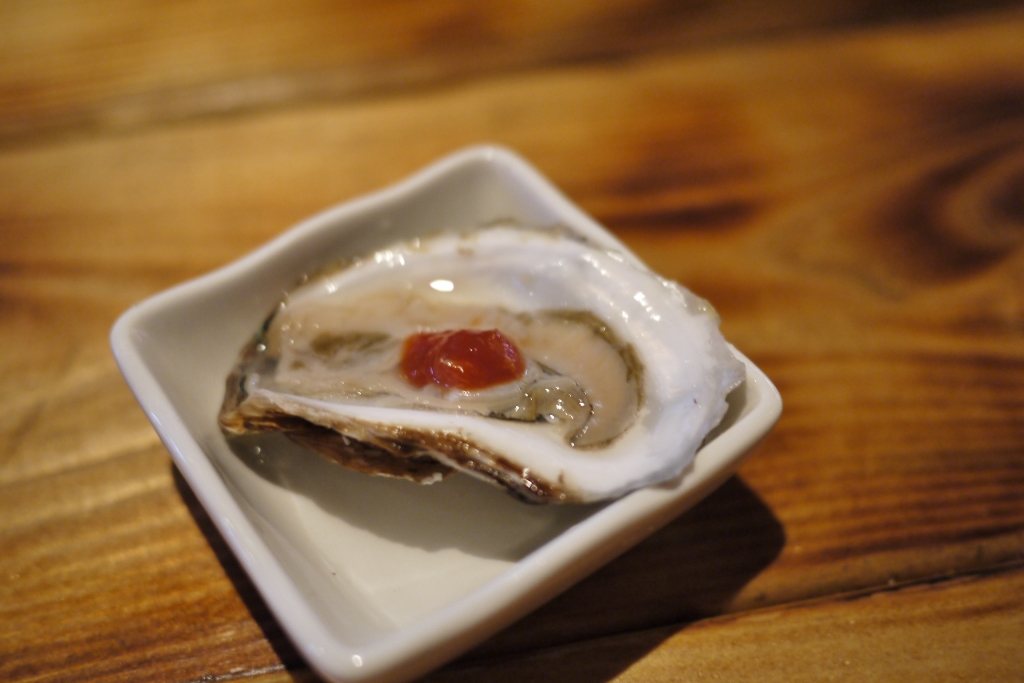附近酒吧林立,所以店舖櫥窗用了很多 Sake 瓶做裝飾吸引途人。當天晚上可能天氣太冷,店內客人不多,所以不用等候,服務生便馬上安排我們坐下!! 餐牌食物種類尚算OK,走的都是大路款式,聽聞 NOME 的老闆是韓裔人仕,所以當中亦有一些 韓風 / 洋風較重的 Fushion 菜。點菜後,服務生拿來每人一隻 Malpegue 生蠔作前菜 (免費的)。食物味道方面中規中舉,但不知為何它的菜上桌時都不太熱?! 個人比較喜歡它的熟食多於魚生。NOME 另一特色是… 每個星期二和三都會推出 $ 1 一隻生蠔的優惠 (我估計是 Malpegue),喜歡吃生蠔,但又不想自己開的話…. 那麼可以去試試。